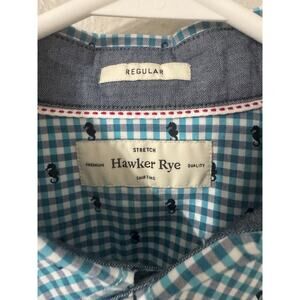 Hawker Rye Stretch Regular Fit Blue White Gingham Seahorse Button Down Shirt LgL