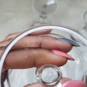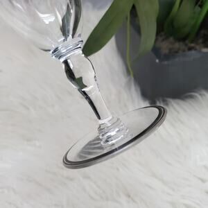 Hawkes crystal goblet wine glasses with a sterling silver band on the rim and foot. These art deco goblet pattern #2-1 set of 2 glasses are pre-loved and in excellent condition for their age (no chips, no cracks, or damage and comes from a smoke and pet-free environment). Color: Clear & silver Set of 2 Measurements: Height: 6 3/8" Packaged with love, ships the same or next business day! 🌞