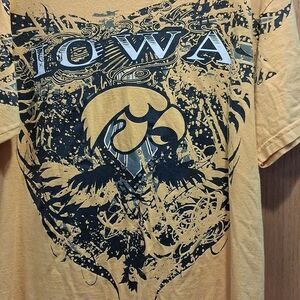 Hawkeyes, unisex, Tri Lake Inc, Size Large, Short Sleeve Shirt. Measures front to bottom 25.75", back to bottom 27.75", pit to pit 21.75". In good preowned condition. Non smoking home.