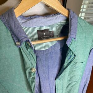 Keywords: Hawkins McGill, button down shirt, long sleeve shirt, mens shirt, color block shirt, green shirt, blue shirt, casual shirt, medium shirt, menswear, button up shirt