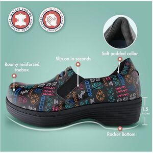 SLIP RESISTANT+FEATHERLIGHT: Approx. heel height: 1 1/2" with 3/4" platform. Slip-resistant rubber outsole construction for excellent traction and grip on dry, wet, and oily/wet surfaces.