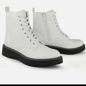 Hawkwell White Combat Side Zipper Lace up Ankle Booties Size 11