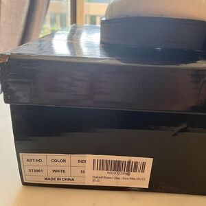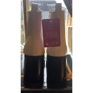 Hawkwell Women's Platform Side Zipper Chelsea Boots High Heel Square Toe Size 10 White with Black trim