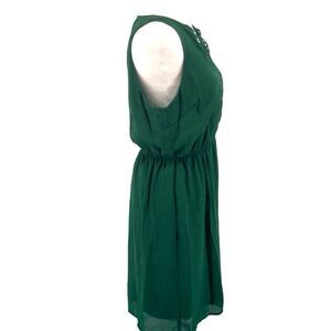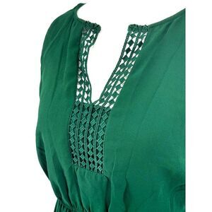 Hawthorn 41 Green Crochet-Detail Sleeveless Dress Sz M EUC Elastic Waist Spring