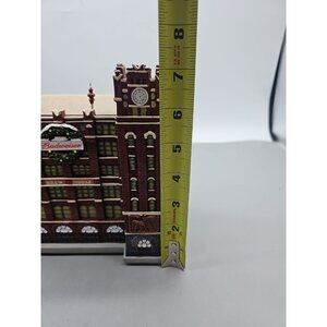 Lights up works The Hawthorne Village Budweiser Brew House from the Holiday Village Collection is a resin house featuring the iconic Budweiser brand logo. Manufactured in 2018, this collectible piece is perfect for Christmas enthusiasts who enjoy adding charming village houses to their holiday decor. The detailed craftsmanship and festive design make it a delightful addition to any holiday display.
