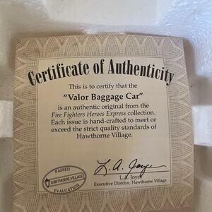 Hawthorne Village Fire Fighters of America Valor Baggage Car No Power Cord