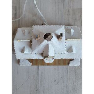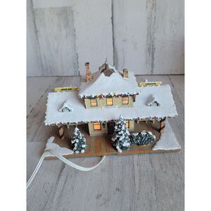 Product has discoloring marks on snow in multiple spots, does not include flags or any accessories, marks and scratches, but otherwise in good condition, light cord and box are not included, product lights up on inside