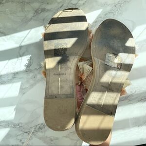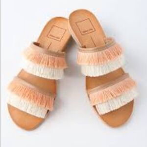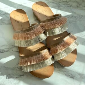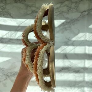 Haya Natural Fringe Slide Sandals Peach Beige Tan Vacation