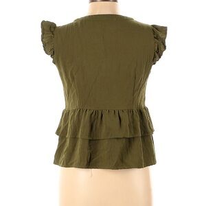 Hayden Green ruffle button up top. Purchased from ThredUp final sale - see photos for ThredUp listing. #ruffle #armygreen #buttonup #earthy #hippy