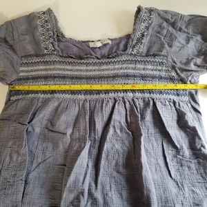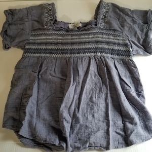 Hayden Embroidered Smocked Top M Gray Purple Boho Cottagecore Style
