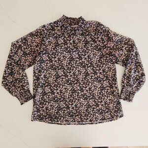 Hayden Floral Mock Sz L Mock Neck Chiffon Blouse Sheer AOP Preppy Romantic Top