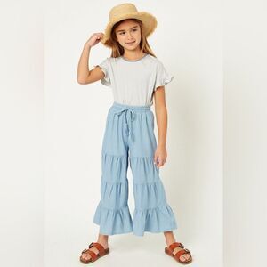 Hayden Girls Chambray Wide Leg Ruffle Pants Girls Size Medium