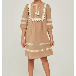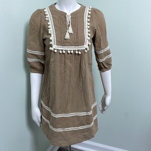 Boho dress with pom pom detail Preowned Missing back button and slight tear on seam below button