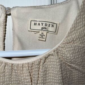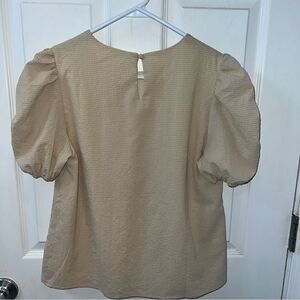 Hayden Girls Seersucker Puff Sleeve Top in beige w keyhole closure sz XL