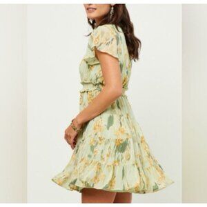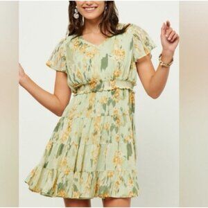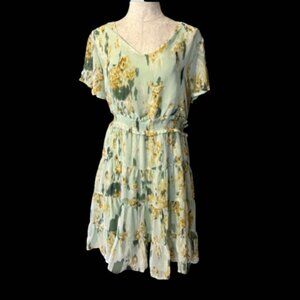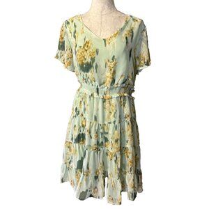 Hayden LA Dress 1XL 1 X XL Blouson Green Floral Smocked Washable Tiered Flowy