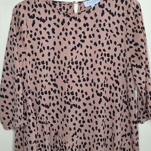 3/4 sleeve swing dress with an abstract dot pattern that kind of resembles a leopard print.