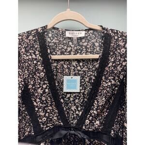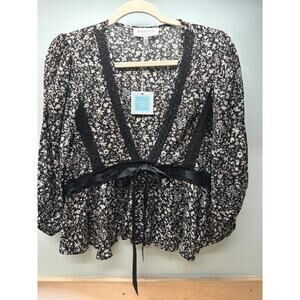 NWT Hayden of Los Angeles Blouse that is black with a small pink and white floral print. Very feminine piece from a popular LA brand, Size Large
