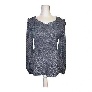 Hayden Los Angeles Botanical Printed Boho Top Small Blouse Lace Babydoll