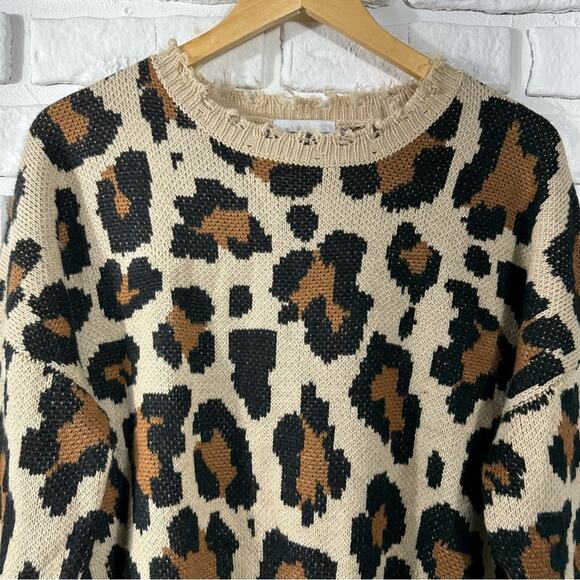 Hayden Los Angeles Distressed Leopard Print Crewneck Sweater Size Small