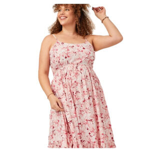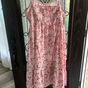 Hayden Los Angeles Floral Back Smocked Tiered Tank Dress size 2XL pink maxi