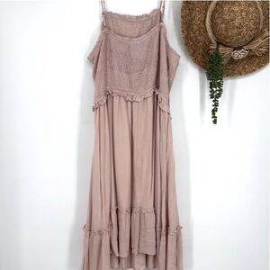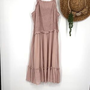 Hayden Los Angeles Smocked Tiered MIDI Boho Dress Pockets Blush 3XL