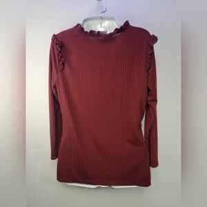 Hayden Los Angeles Women's size Medium Long Sleeve Ribbed Knit Ruffle Top