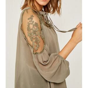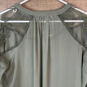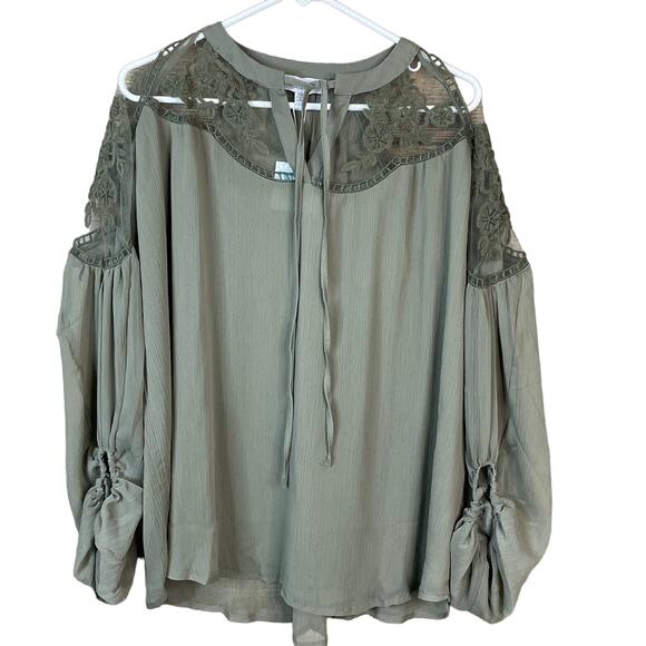 Hayden Sheer Lace Tie Front Peasant Top Olive Green Size Small Medium NWT