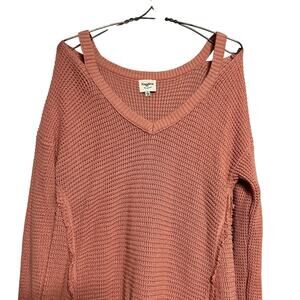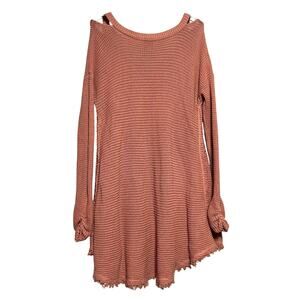 Hayden Size Large Peach Pink Chunky Knit Cold Shoulder Sweater Tunic Dress Lagenlook Boho