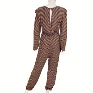 Hayden Striped Brown/white Long Sleeve Jogger Jumpsuit Womens Size M