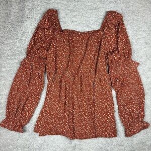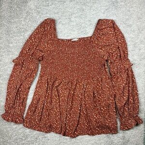 Hayden Top Womens Medium Smocked Babydoll Floral Print Cottagecore BOHO Bohemian