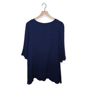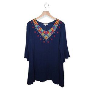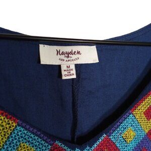 This top by Hayden Los Angeles is a beautiful, vibrant navy tunic top. This top features a v-neck line, smocked fabric, colorful embroidered neckline detail, 3/4 inch bell sleeves and is lined. This top is flowy and relaxed fit and is in excellent condition and is free from any visible flaws.