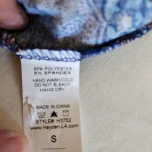 Vibrant flared pants with a striking pattern. Features blue, orange, and cream colors. Hayden brand NWT