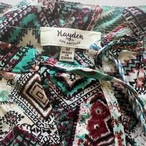 Hayden Womens Mini Dress Multicolor Patchwork V Neck Sleeveless Lace Trim Boho M