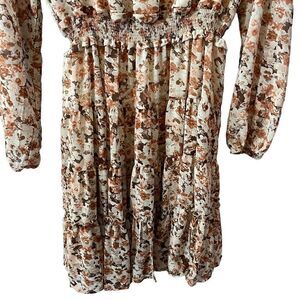 Hayden Los Angeles Boho Smocked Waist Floral V Neck Dress Size MED