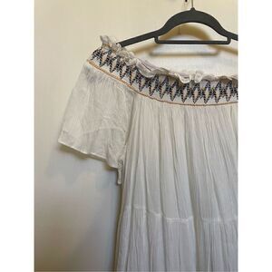 Hayden Los Angeles OFF-SHOULDER TIERED Boho White SWING-DRESS size L NWT