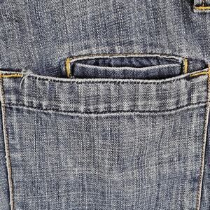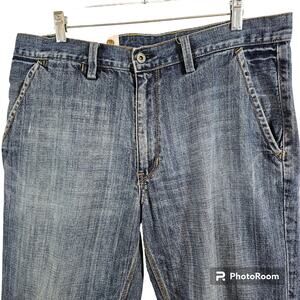 This is a sturdy pair of men's denim shorts by Hayes in EUC. They have deep front side pockets, and a little change pocket on the right side. There are two pockets in the back, and the right buttock pocket has a smaller pocket inside the bigger one. The color of the jeans show a little distressing. See photos for measurements. Waist Size 36", Front Rise 12", Inseam 12"