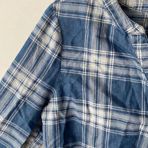 Hayes Plaid Checkered Cotton Blend Henley 3 Button Flowy Blouse Blue White M