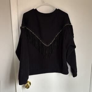 Hayley Menzies Ada Suede Fringe Cotton Blend Sweatshirt Size Large Solid Black