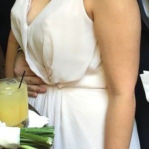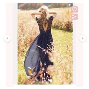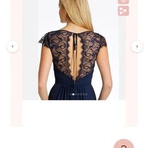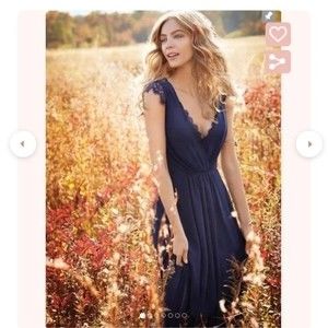 This dress has a beautiful v-neck with lace detailing on the sleeve. Attaching images of dress worn by me but also some other stock images (please note the stock images are a different color than the one I'm listing). Romantic, delicate, flattering, stunning!