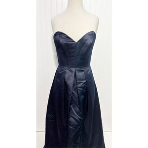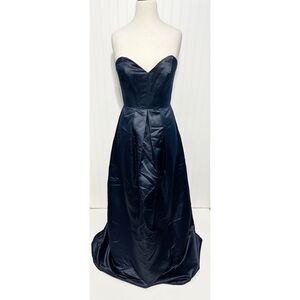 Hayley Paige Strapless A-Line Satin Gown Sweetheart Neckline Indigo Blue Size 8