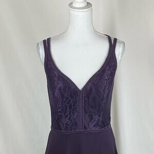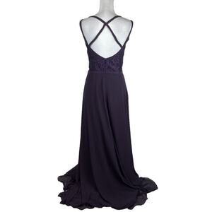 Hayley Paige Sheer Eggplant Purple Lace Backless Party Event Maxi Dress NWOT