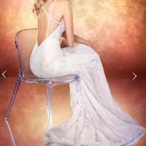 @janetamber89 The dress is Maverick size 6 in ivory/champagne with 54" hollow to hem. I typically wear a size 0 and the bust and waist was taken in quite a bit. When do you need the dress? It’s being stored safely in another state but due to the covid situation I am not sure how quickly I could get it to you if you need it in the next few weeks so just want to be transparent. I could do 3500 for the dress. Thanks!