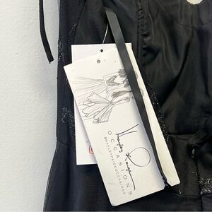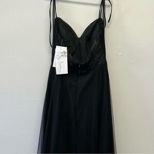 Hayley Paige Occasions Bridesmaid Gown Style 5903 Black, Size 8- Tulle A-line gown with floral beaded bodice that has a pop of red behind one of the flowers. The last picture shows how the back fits, not for color.