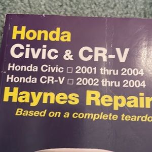 Repair manual for Honda Civics 2001-2004 and CRV 2002-2004. Excellent used condition. Perfect for new drivers that may get a Honda for a first car. 🚗