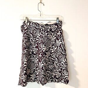 HAYSTACKS Women's Brown and White Floral Paisley Slip on Skirt.