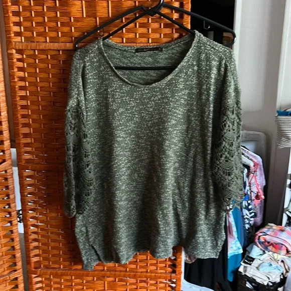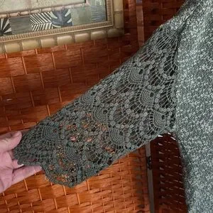 This top is used but still in great condition. It is 44% polyester 35% cotton 21% rayon. Pit to pit 25 inches stretch. It’s about 29 inches length 25 1/2 inches