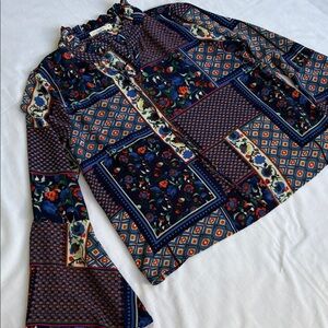 Hazel Anthropologie Boho Multicolor Floral Patchwork Blouse Bell Sleeve Women M