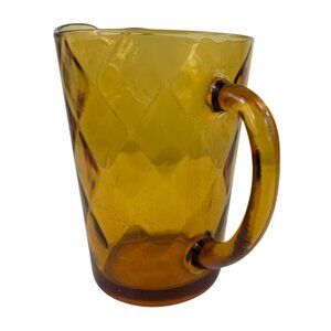 Hazel Atlas Amber Diamond-Pattern Glass Pitcher With Handle Vintage Style