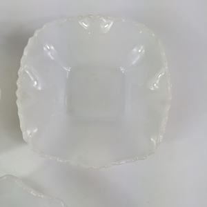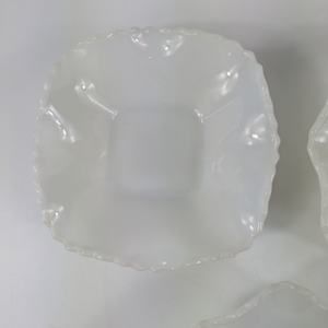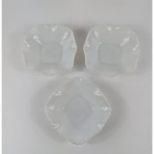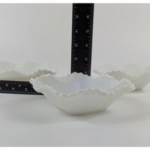 Title: Hazel Atlas Candy Bowls Vtg White Milk Glass Diamond Quilt Cut Home Decor MCM Ruffle Mid Century Modern
