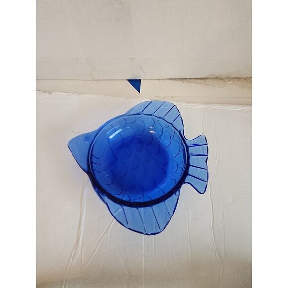 Hazel Atlas Cobalt Blue Angel Fish Glass Dish Bowl Trinket Candy Ashtray Art Dec